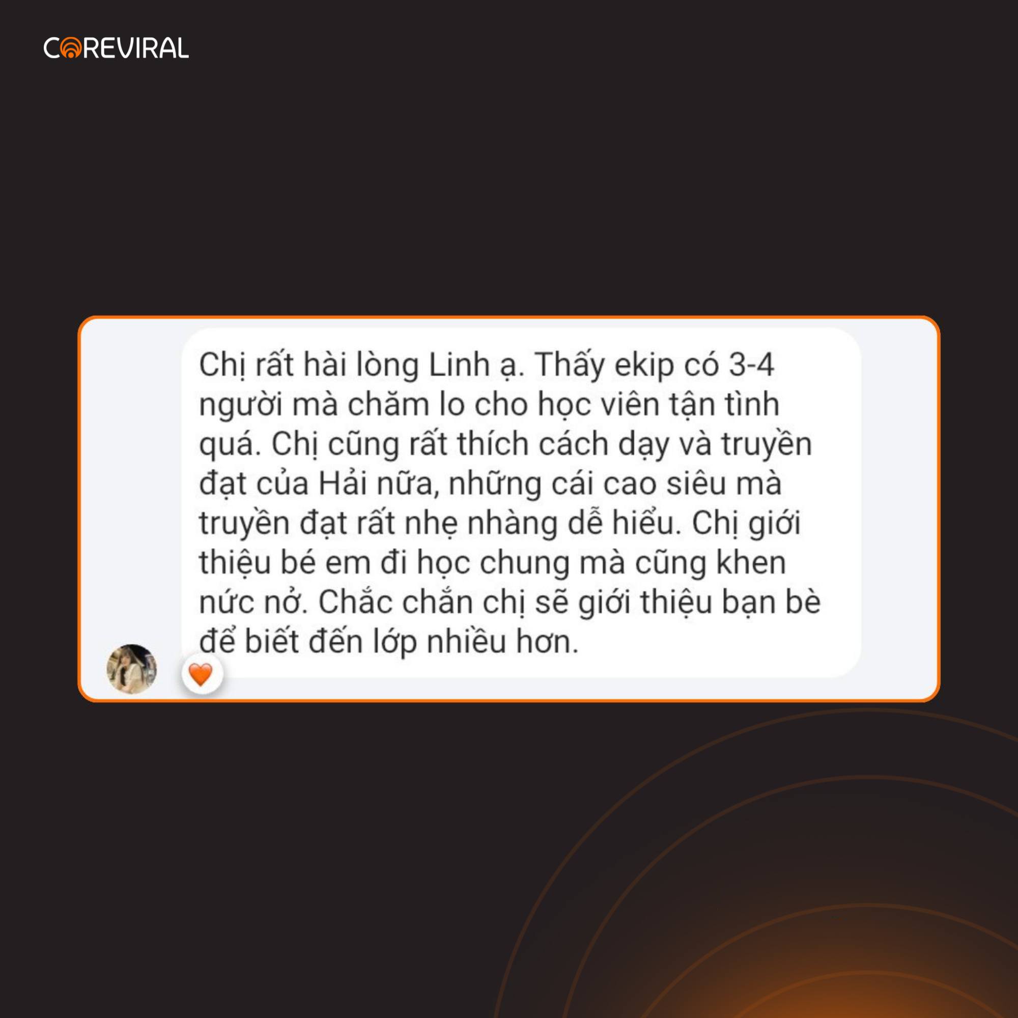 “Chị thích nhất ở khóa huấn luyện này là cái sự quy trình chuyên nghiệp của CoreViral, điều mà chị chưa từng gặp bất cứ một khóa nào dạy về